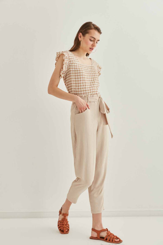 CROP TROUSERS WITH HIGH WAIST BELT ARCHES