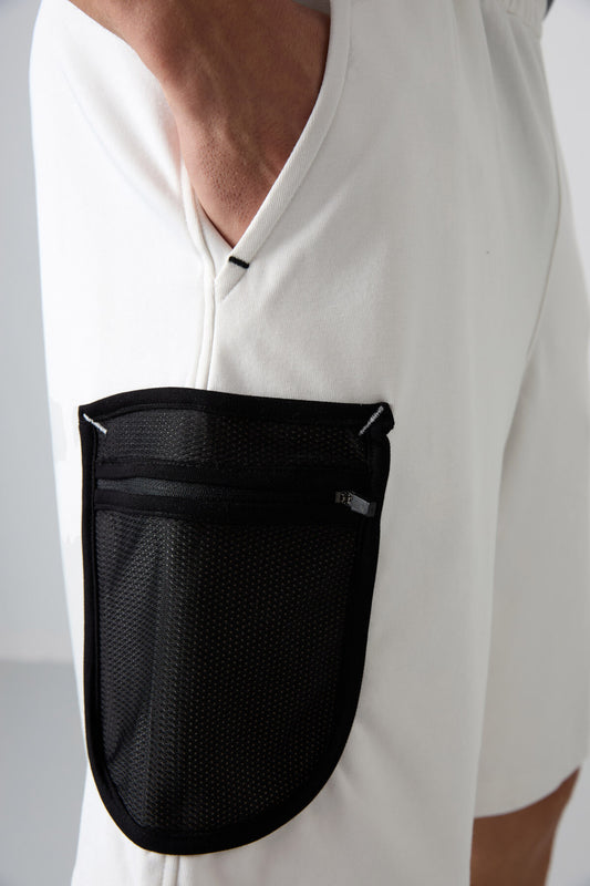 Beige Cotton Thick Soft Textured Standard Fit Basic Men's Shorts - 81275
