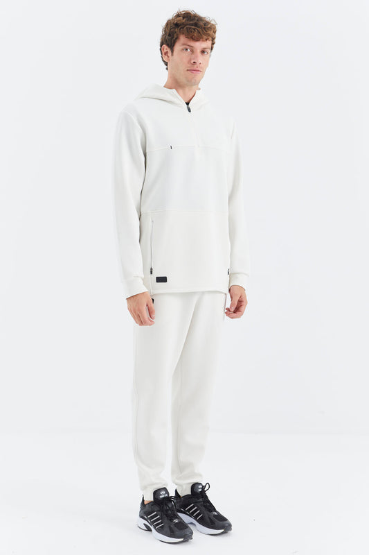 Beige Hooded Half-Zip Pocket Detailed Men's Tracksuit Set - 85222