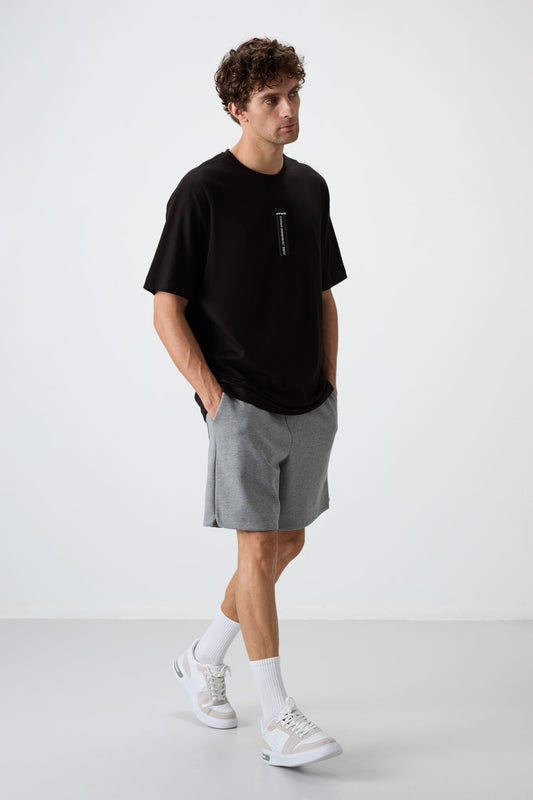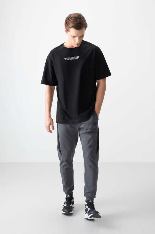 Black - Anthracite Cotton Thick Soft Textured Oversize Fit Printed Men's T-Shirt - 88321