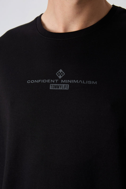 Black %100 Cotton Thick Soft Textured Oversize Fit Printed Men's T-Shirt - 88357