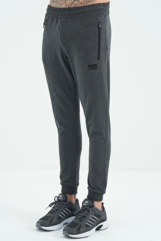 Black Anthracite Melange Drawstring Jogger Men's Tracksuit Bottom - 84907