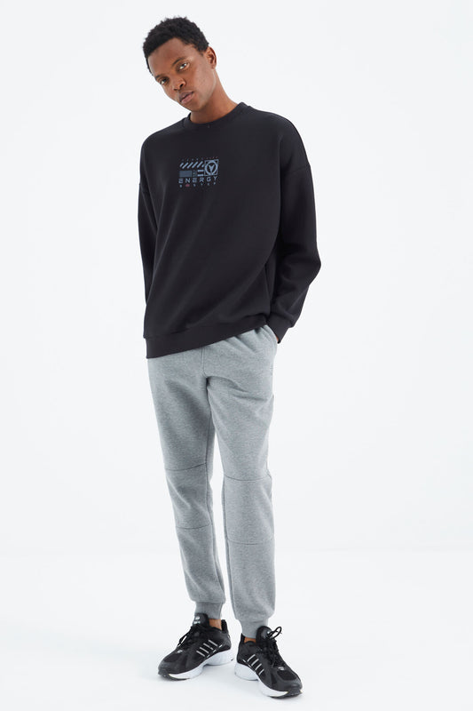 Navy Blue O Collar Printed Detailed Relax Fit Men's Sweatshirt - 88283