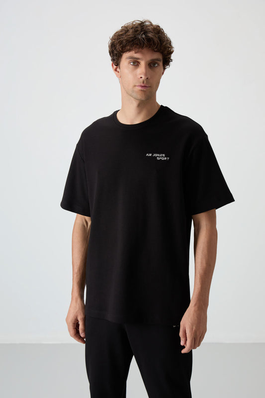 Black Cotton Thick Soft Textured Oversize Fit Printed Men's T-Shirt - 88326