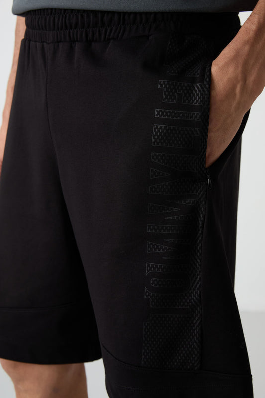 Black Cotton Thick Soft Textured Comfort Fit Printed Men's Shorts - 81265