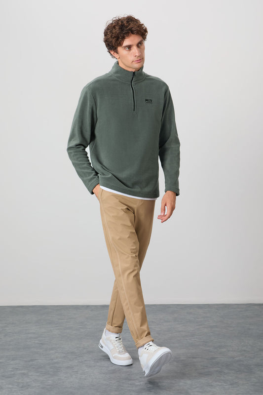River Khaki Stand-Up Collar Men's Fleece Sweatshirt - 88310