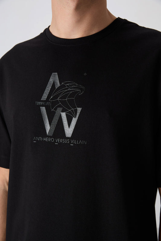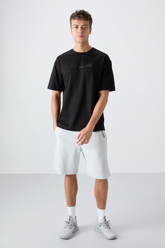 Black Cotton Thick Soft Textured Oversize Fit Printed Men's T-Shirt - 88342