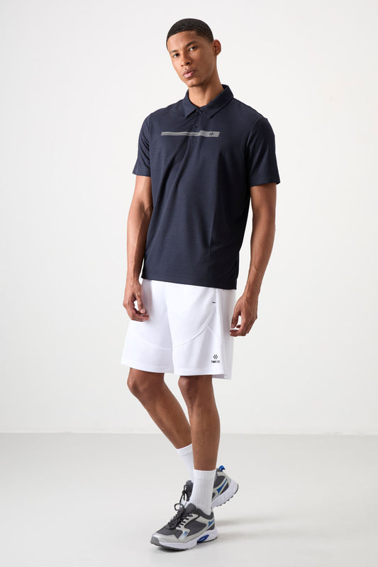 White Polyester Breathable Textured Thin Flexible Standard Fit Polo Collar Men's Performance T-Shirt - 88393