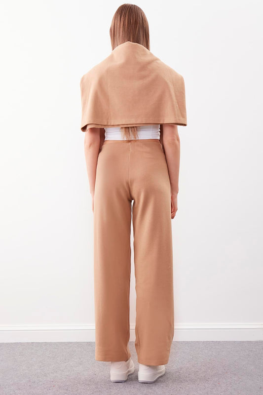 Wild Rose Compact Cotton Thick Smooth Textured Stand Collar Oversize Fit Women's Tracksuit Set - 95342