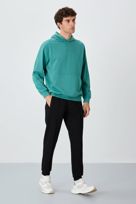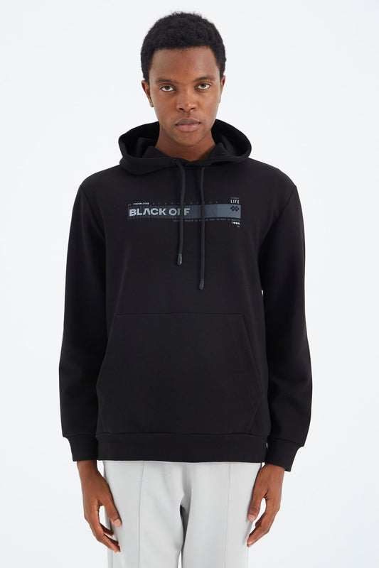 Black Hooded Laced Print Detailed Relax Fit Men's Sweatshirt - 88287