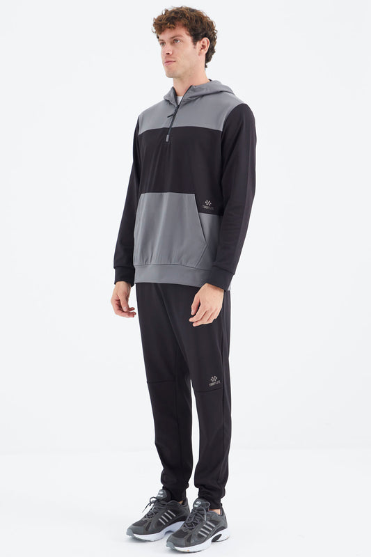 Black Hooded Half-Zip Pocket Detailed Men's Tracksuit Set - 85222