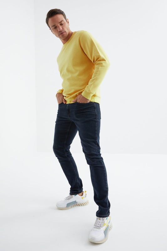 Yellow Basic Round Neck Comfort Fit Men's Sweatshirt - 88053