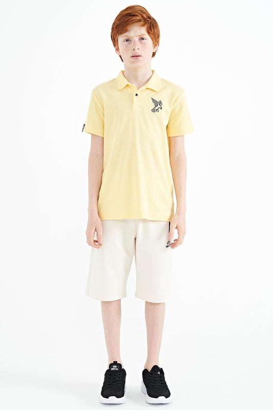 Yellow Minimal Embroidery Detailed Standard Pattern Polo Collar Boys T-Shirt - 11084