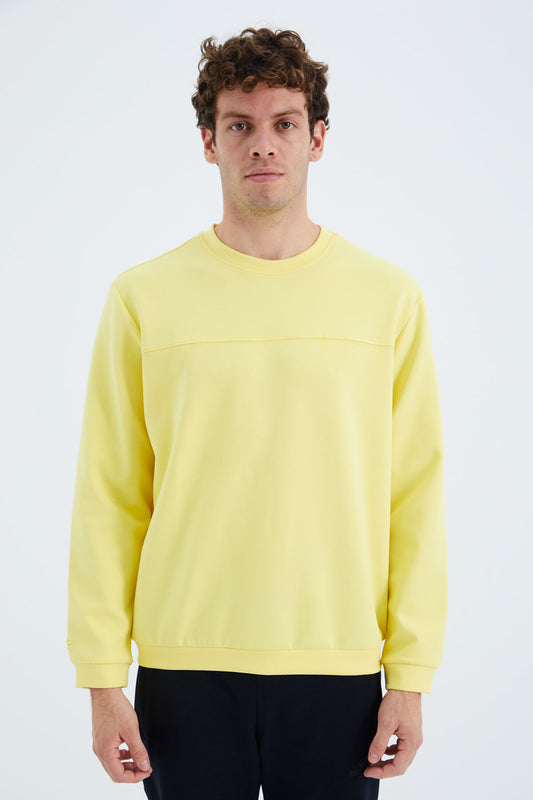Yellow O Collar Front Stitch Detailed Basic Relax Fit Men's Sweatshirt - 88270