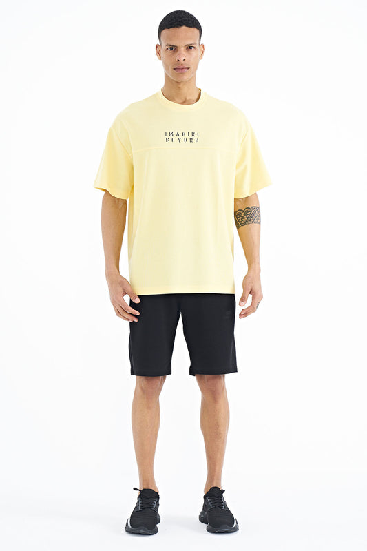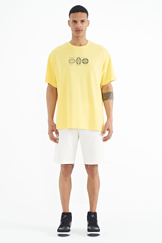 Yellow Front Back Printed O Collar Oversize Men's T-shirt - 88224