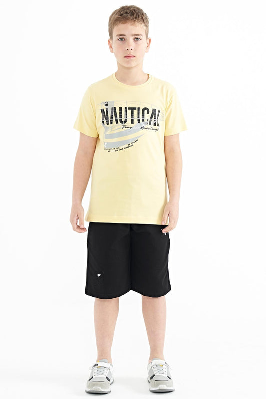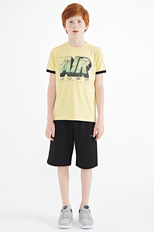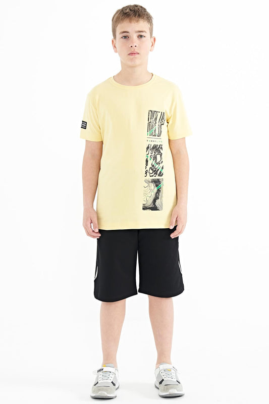 Yellow Print Detailed Standard Mold O Collar Boys T-Shirt - 11133