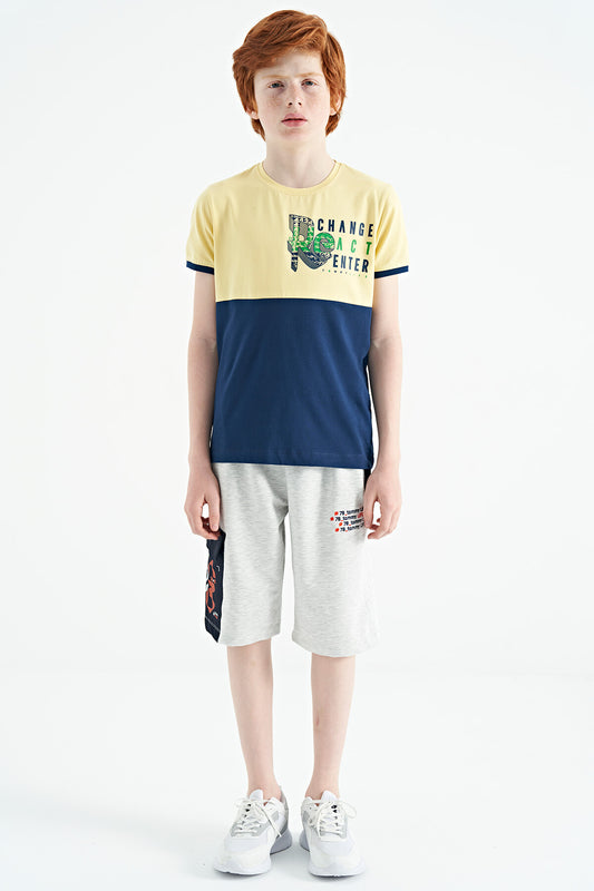 Yellow Print Detailed Color Block Standard Fit O Collar Boys T-Shirt - 11107