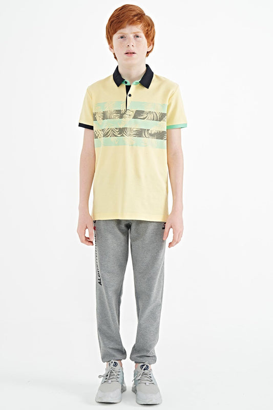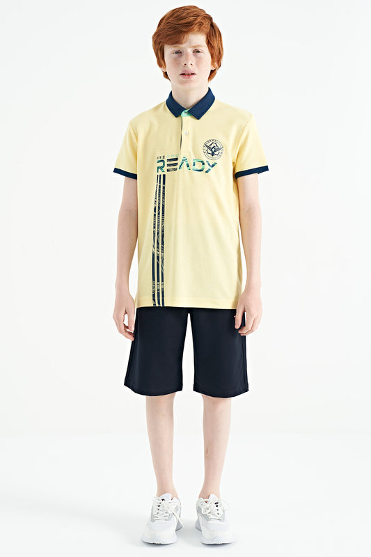 Yellow Print Detailed Standard Mold Polo Collar Boys T-Shirt - 11101