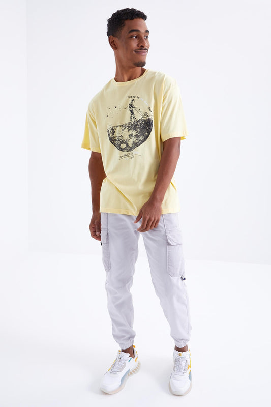 Yellow Printed O Collar Men's Oversize T-Shirt - 88098
