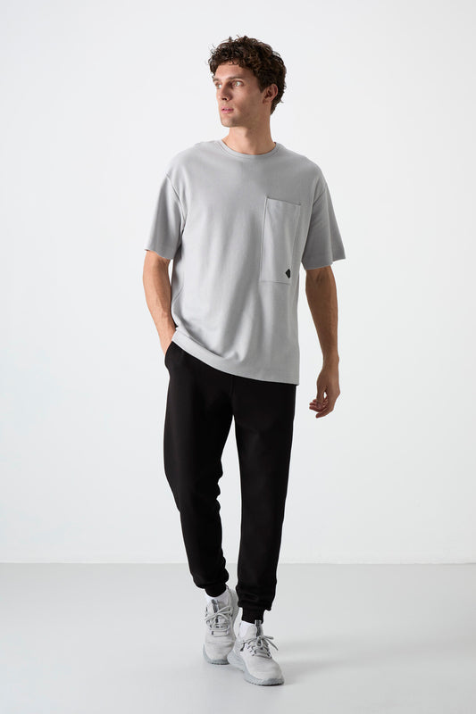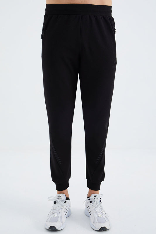 Black Laced Pocket Detailed Relax Fit Men's Tracksuit Bottom - 84995