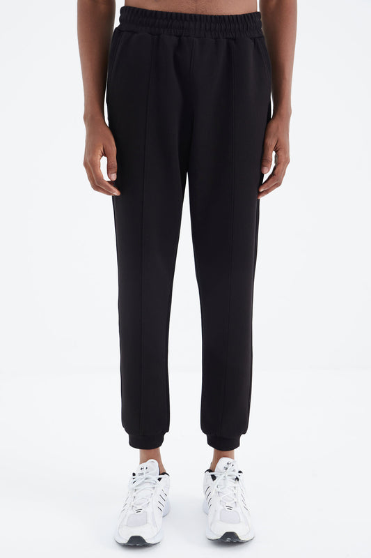 Black Laced Front Stitch Detailed Standard Fit Men's Tracksuit Bottom - 84994