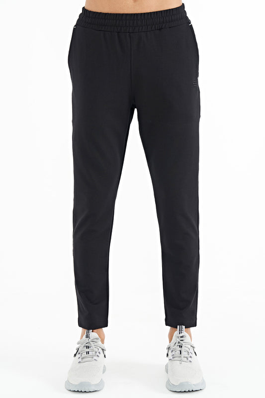 Black Laced Striped Detailed Relax Fit Men's Tracksuit Bottom - 82106