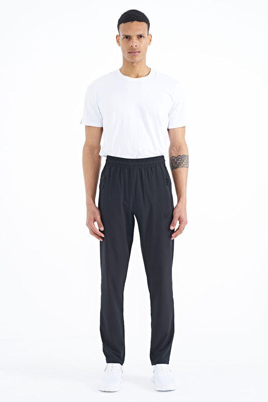 Black Men's Zippered Three-Pocket Standard Fit Classic Hem Tracksuit Bottom - 84768