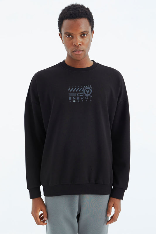Black O Collar Print Detailed Relax Fit Men's Sweatshirt - 88284