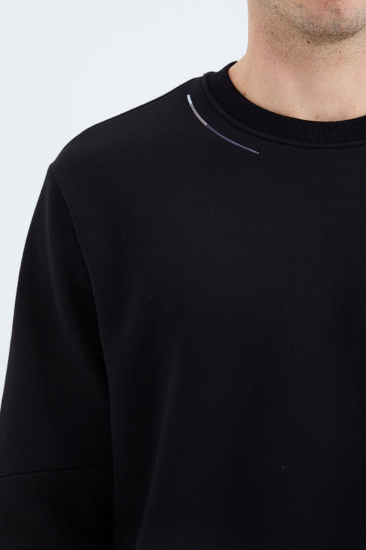 Black O Collar Front Stitch Detailed Basic Relax Fit Men's Sweatshirt - 88270