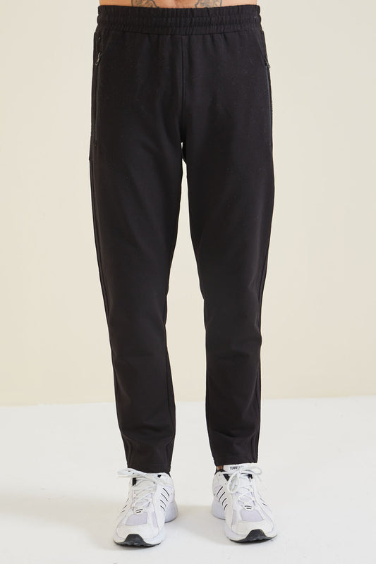 Black Printed Double Striped Slim Fit Jogger Men's Tracksuit Bottom - 84780