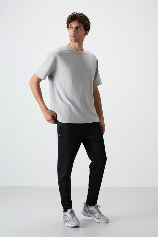 Black Scuba Fabric Men's Tracksuit Bottom - 84950