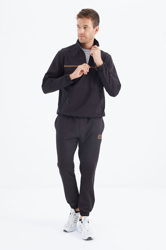 Black Stand Collar Hidden Pocket Detailed Relax Fit Men's Tracksuit Set - 85220