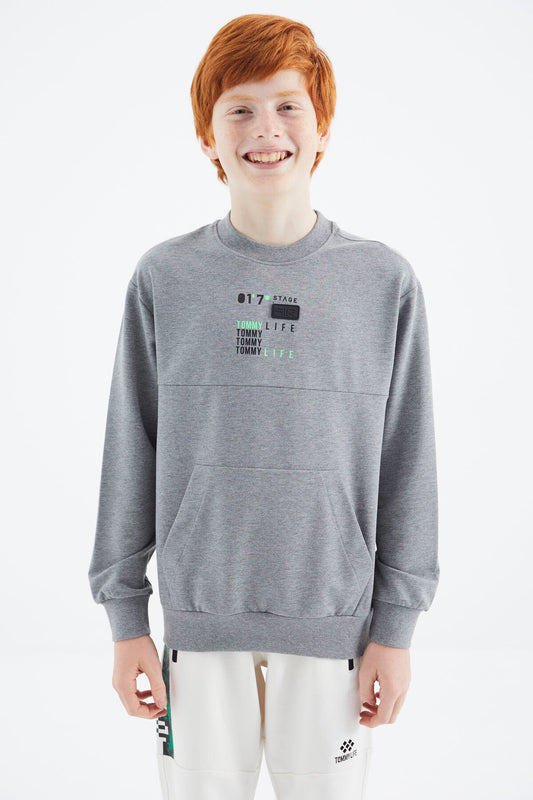 Grey Melange Standard Fit Boys' Sweatshirt - 11179