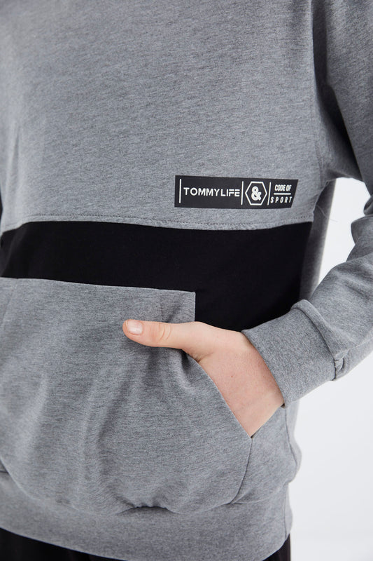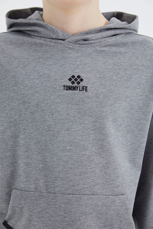 Grey Melange Hooded Boys' Sweatshirt - 11177