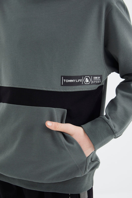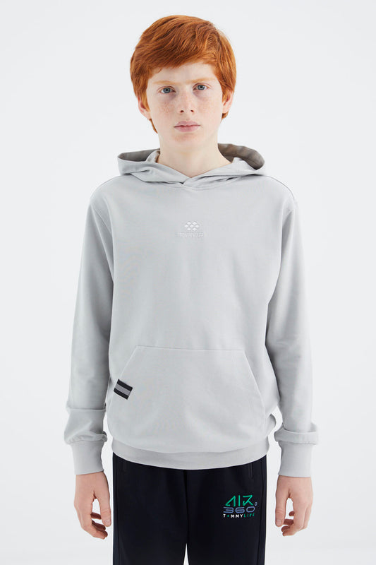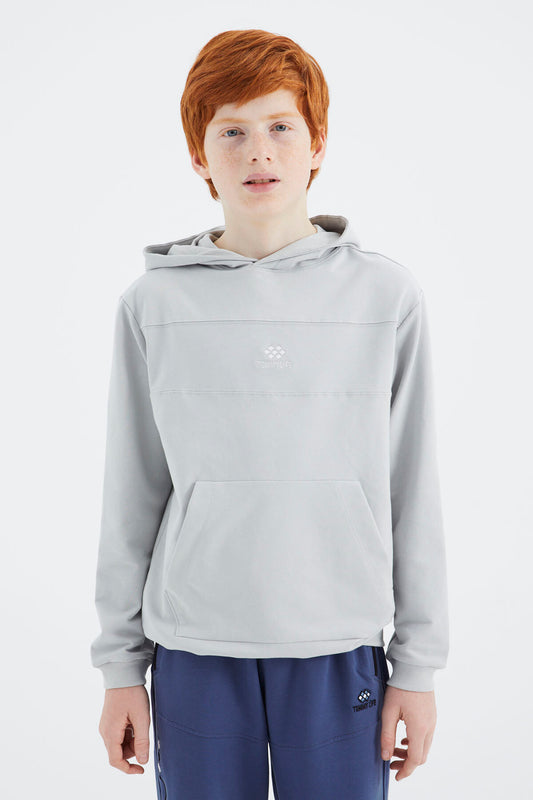 Stone Hooded Basic Boys Sweatshirt - 11181