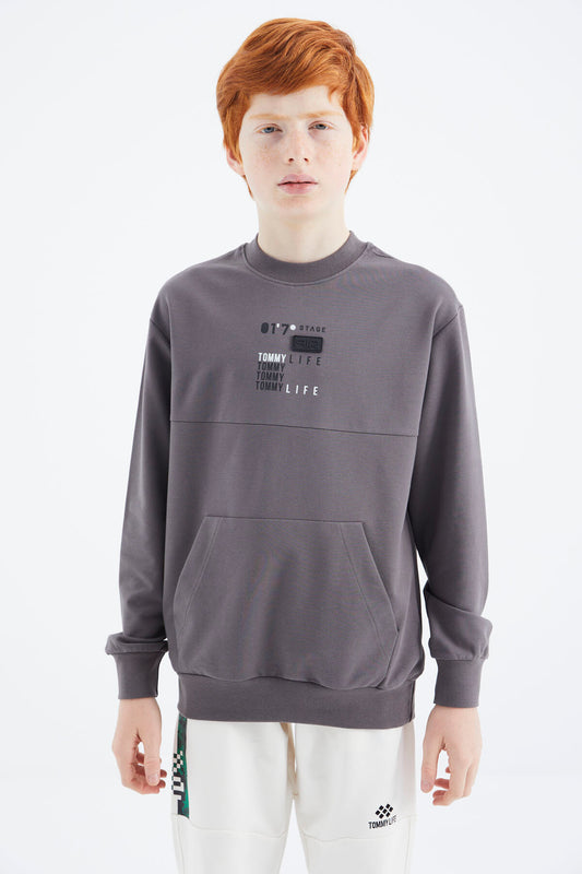 Dark Grey Printed Boys' Sweatshirt - 11175