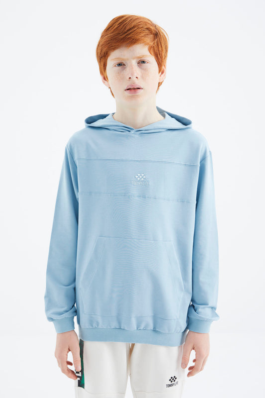 Light Blue Basic Hooded Boys' Sweatshirt - 11181