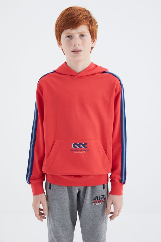 Print Kangaroo Pocket Hooded Regular Fit Boys' Sweatshirt - 11002