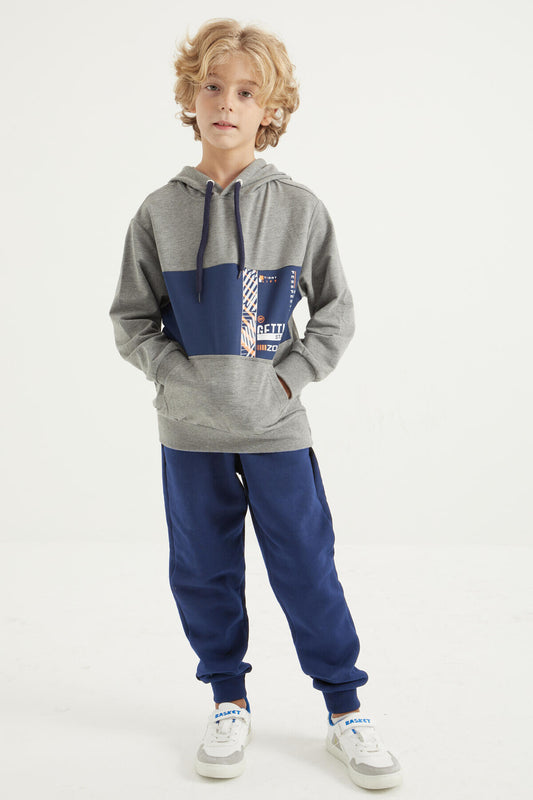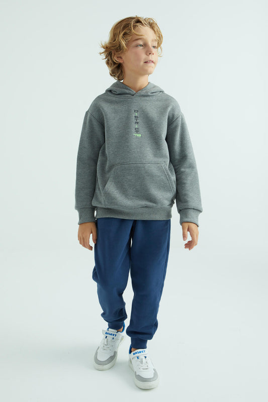 Hooded Standard Fit Boys' Sweatshirt with Kangaroo Pocket and Print Design - 11002