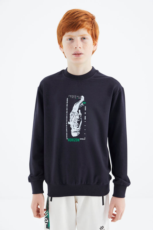 Navy Blue Printed Boys' Sweatshirt - 11174