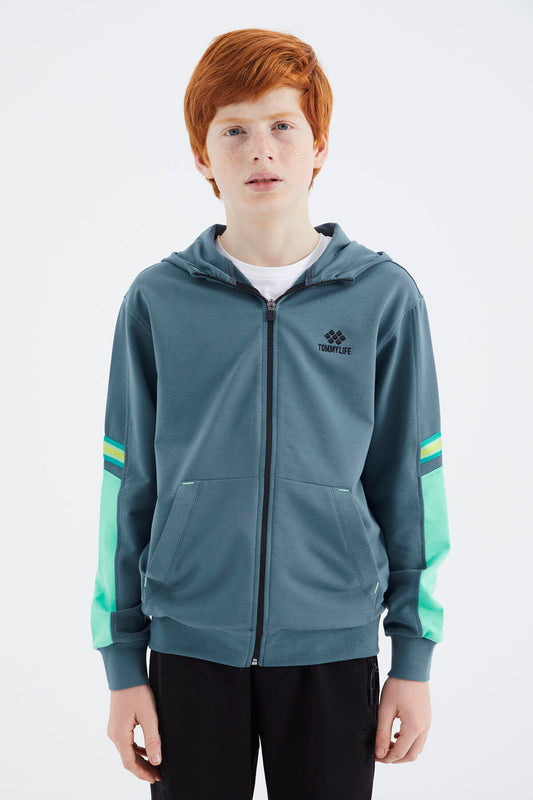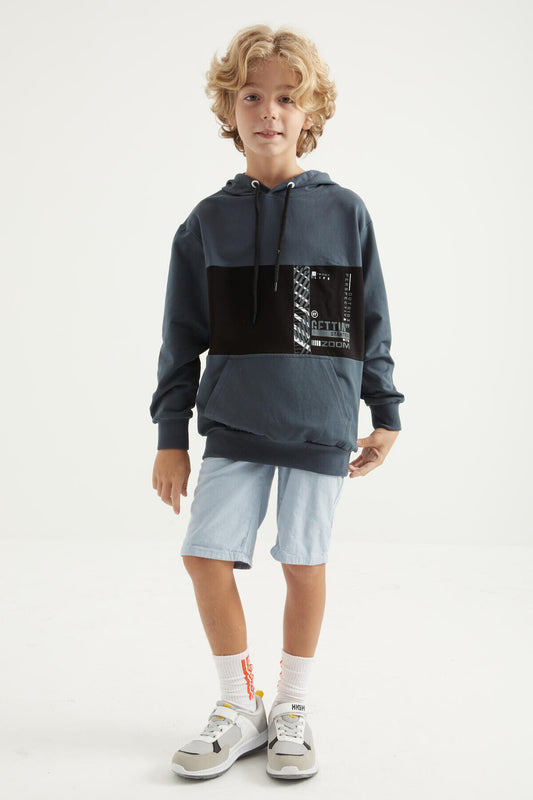 Petrol Print Kangaroo Pocket Hooded Regular Fit Boys' Sweatshirt - 11002