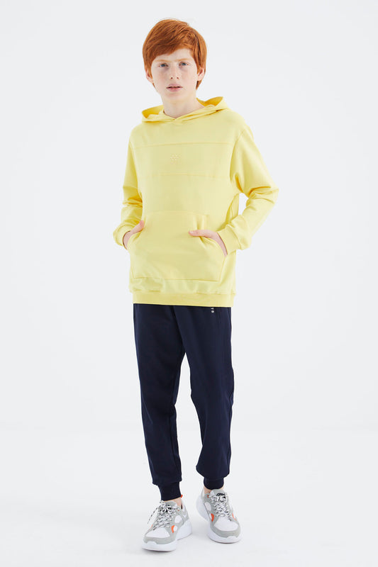 Yellow Hooded Basic Boys' Sweatshirt - 11181