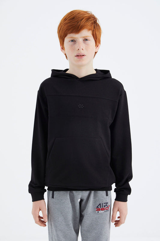 Black Hooded Basic Boys' Sweatshirt - 11181