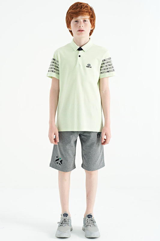 Light Green Sleeve Print Detailed Standard Cut Polo Collar Boys T-Shirt - 11093