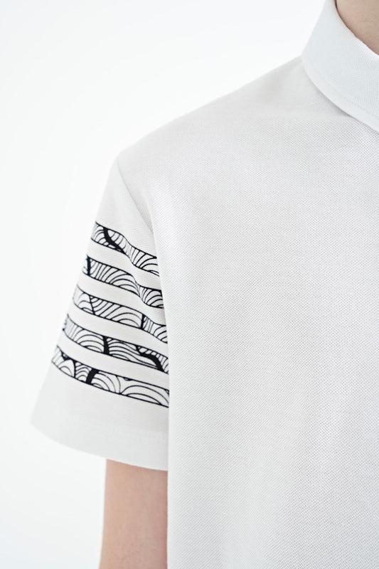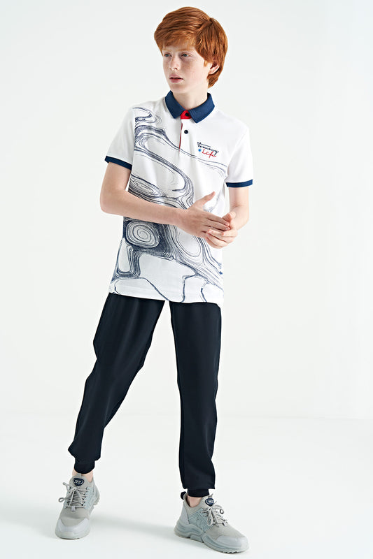 White Sleeve Print Detailed Standard Pattern Polo Collar Boys T-Shirt - 11093
