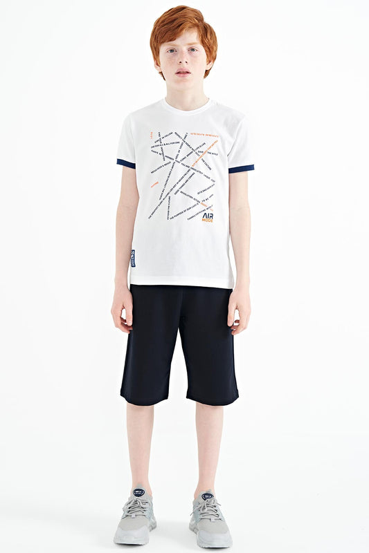 White Minimal Print Standard Fit O Collar Boys T-Shirt - 11132