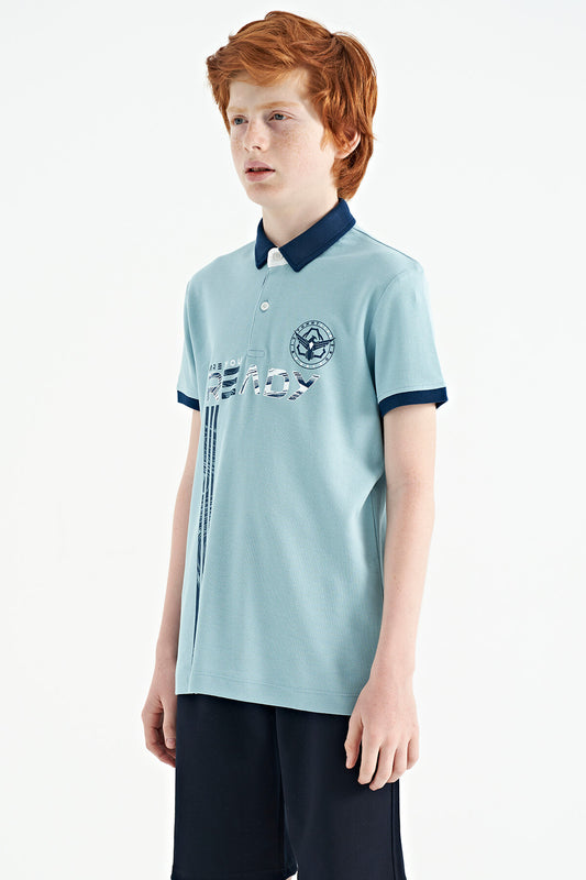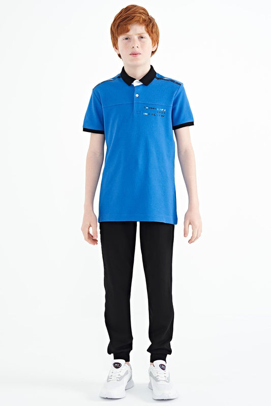 Printed Blue Detailed Standard Mold Polo Collar Boys T-Shirt - 11140