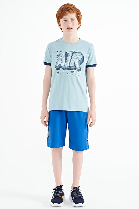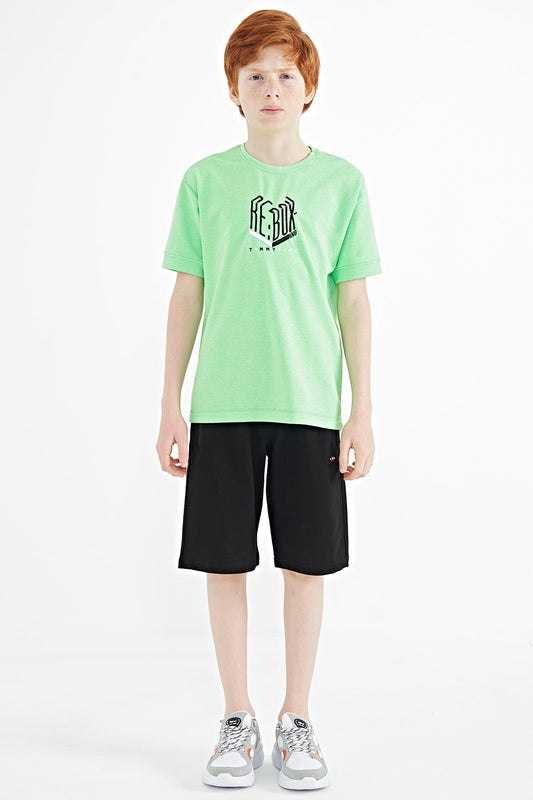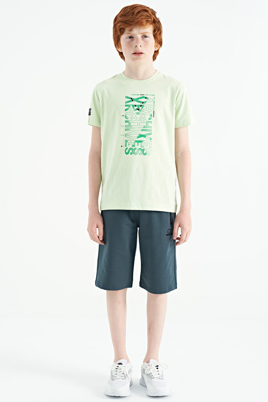 Light Green Preprint Detailed O Collar Standard Fit Boys' T-Shirt - 11099