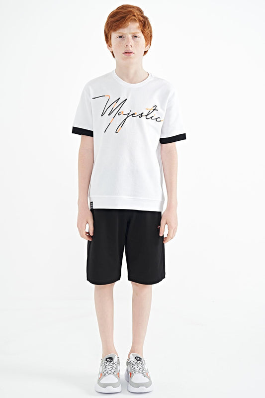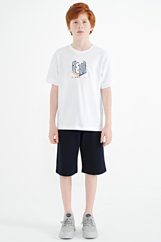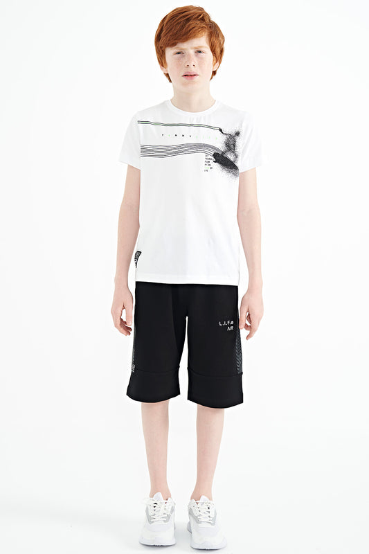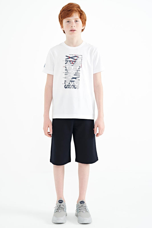 White Pre-Print Detailed O Collar Standard Fit Boys' T-Shirt - 11099