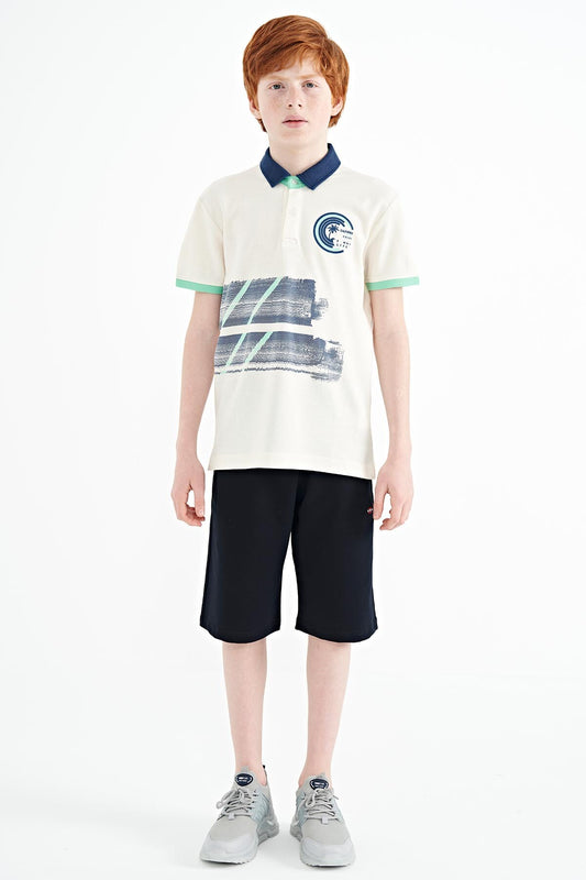 Ecru Print Detailed Polo Collar Standard Fit Boys' T-Shirt - 11094